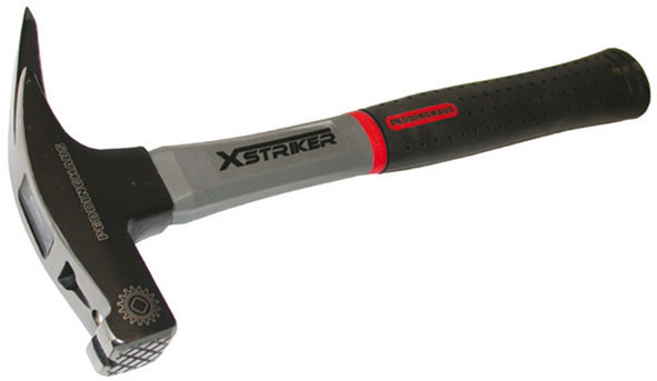 In acciaio forgiato. Parti battenti temprate.Manico inamovibile e infrangibile in fibra di vetro con impugnatura anatomica in materiale sintetico morbido. Testa con portachiodo magnetico, laccata nera. Peso g 600.