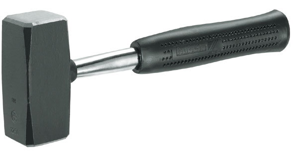 A doppia testa piana. In acciaio CROMO-VANADIO a tempra differenziata. Parti battenti fortemente indurite. Manico in tubo d’acciaio temprato con impugnatura anatomica in materiale sintetico morbido.