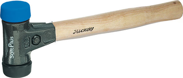 Mazzuole combinate anche con teste di differente materiale, intercambiabili. Corpo portateste formato da due gusci in ghisa pregiata, temprata, avvitati, con scanalature di tenuta per le teste e il manico di legno Hickory. Lunghezza totale mm 290(30) / 325(40) / 360(50). Teste di sicurezza prive di cadmio, antischegge, infrangibili e resistenti all'abrasione. A = Testa colore bianco, in Poliammide duro, durezza 70 Shore. Per lavori pesanti, in cantieri edili, navali, trafilerie, ecc. B = Testa colore blu, in Elastomero morbido, durezza 20 Shore. Per pezzi delicati, pezzi in lega leggera, lavorazioni del legno, lavori di montaggio, ecc. G = Testa colore giallo, in Poliuretano medio-duro, durezza 63 Shore. Per uso universale, nelle produzioni in campo meccanico, officine di riparazione auto, nella lavorazione delle lamiere, ecc. N = Testa colore nero, in Cautschu medio-morbido, durezza 45 Shore. Per lavori robusti, di riparazione in officine, ecc.