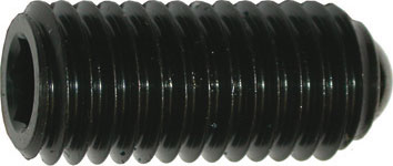 Tipo con sfera, esagono incassato e spinta maggiorata. In acciaio temprato, classe di resistenza 5,8, bruniti. Sfera temprata.