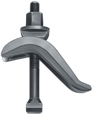 Tipo curvo regolabile,completo di vite per cave, dado e rondella. Indicato per serrare corpi di alto spessore in spazi ristretti.