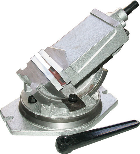 Tipo girevole a 360° e basculante a 90°. Per lavorazioni su fresatrici e trapani. Corpo in ghisa speciale di alta resistenza. Ganasce intercambiabili, in acciaio, temprate e rettificate. Parti di scorrimento rettificate. Vite completamente coperta. Con manovella.