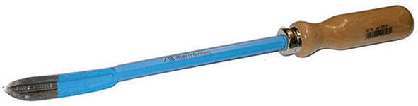 In acciaio al cromo, temprato, durezza 58-62 HRc.Impugnatura in legno.