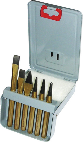 Composizione:2 scalpelli ottagonali mm 125 e 1501 unghietta ottagonale mm 125 1 punzone 2927 GF mm 31 punzone 2927 GF mm 41 punteruolo 2927 GD Gr. 1Assortimento completo. In pratica cassetta metallica snodata.