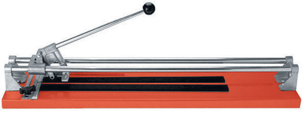 Con rotella in metallo duro. Tipo professionale, con 2 guide di scorrimento in acciaio rettificato e squadra graduata per tagli a 90°. Per tagliare tutti i tipi di piastrelle smaltate o vetrificate, porcellane, maioliche, ecc.