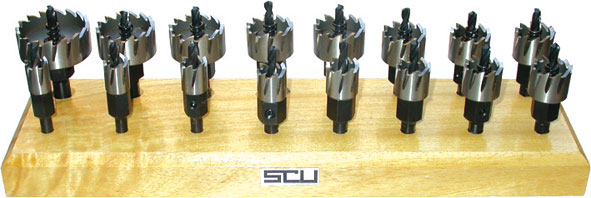 Tipo professionale in acciaio SUPER-RAPIDO HSS per uso su trapani a colonna e portatili (solo rotazione). Taglienti con scarico laterale. Adatte per forare lamiere in ferro, acciaio, INOX, ghisa, alluminio e metalli non ferrosi fino a spessore mm 8. Le frese a tazza vengono fornite complete di attacco cilindrico con pianetti e punta guida, intercambiabili in HSS Ø mm 6 fino alla misura Ø mm 50. Dalla misura Ø mm 55 con punta guida Ø mm 8. Fresa a tazza completa, con molla di espulsione (a partire da Ø mm 25).
