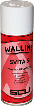 "SVITA 5" Spray multifunzione ideale per facilitare lo smontaggio di pezzi ossidati, aggiungendo contemporaneamente un'azione sgrassante, lubrificante, idrorepellente e protettiva di lunga durata. Utilizzato nelle industrie meccaniche, tessili, siderurgiche, nelle officine e in manutenzione.
