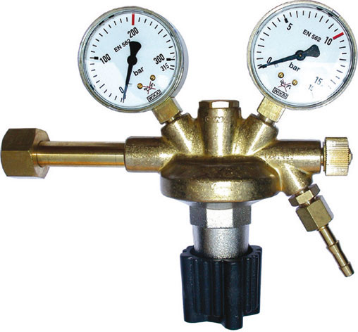 Corpo stampato in ottone massiccio. Manometri di precisione (Ø 63 mm) dotati di doppia cuffia protettiva, che ne permette la massima protezione. Precisa manopola di regolazione della pressione d'entrata in materiale sintetico. Dotati di filtro interno. Ghiera per l'attacco alla bombola, attacco W 21,7x1/14". Attacco filettato porta-gomma G 3/8. Diametro porta-gomma mm 7,2/11,5.