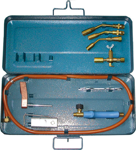 Composta di: 1 Impugnatura Art. 3247 GA 3 Lance Art. 3247 GL x 100-120-140 1 Tubo di combustione Ø mm 19 1 Mazzetta rame a martello da 250 g 1 Cuffia completa di staffa di appoggio 1 Tubo gomma con raccordi 1 Chiave corredo In robusta cassetta lamiera.