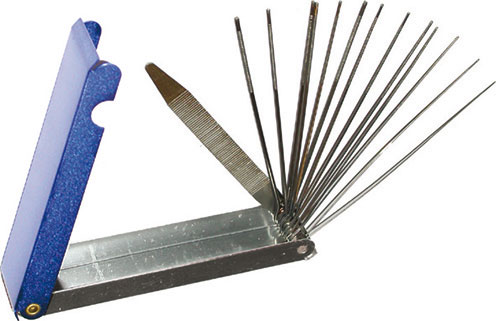 Serie di 13 alesatori Ø mm 0,4 - 0,5 - 0,6 - 0,7 - 0,8 - 0,9 - 1,0 - 1,1 - 1,15 - 1,2 - 1,3 - 1,5 - 1,6 e lama zigrinata. In astuccio.