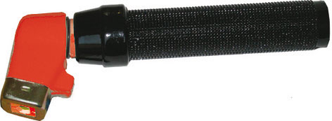 Tipo piegato con foro porta-elettrodi. In ottone. Completamente isolate. Bloccaggio del cavo e serraggio dell'elettrodo tramite avvitamento dell'impugnatura. Costruite secondo le norme Europee EN 60974-11.