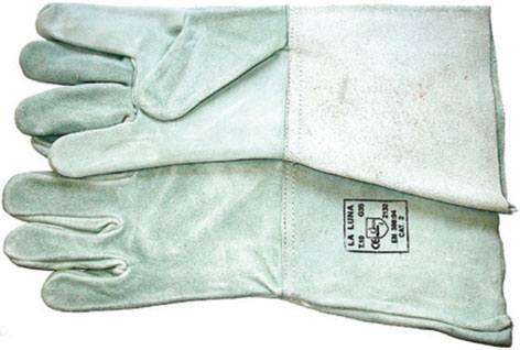 Tipo a 5 dita, completamente in pelle crosta e manichetta lunga mm 150. CAT. 2. Taglia 10. Conformi alle vigenti norme Europee.