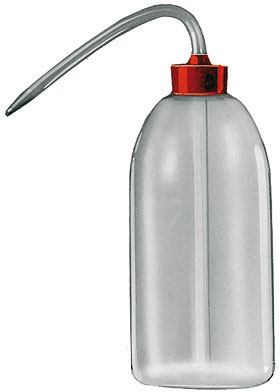 Serbatoio e canna in polietilene flessibile trasparente. Per acidi leggeri, acqua distillata in laboratori chimici, autorimesse.