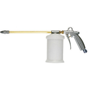 Tipo con canna diritta in ottone. Spruzzatore di grande rendimento. Corpo in alluminio forgiato. Serbatoio in Nylon, infrangibile, indeformabile e inattaccabile da olio o solventi. Costante controllo del contenuto. Urtando contro superfici verniciate non lascia alcun segno. Cadendo non si ammacca. Capacità l 0,700. Lunghezza totale mm 450. Per uso con aria compressa. Pressione d'uso 3-4 bar (Atm). Attacco rapido unificato.