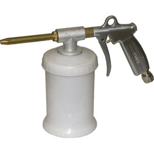 Tipo nebulizzante. Grande economia di liquido. Evita l’intossicazione dell’ambiente. Canna diritta in ottone. Corpo in alluminio forgiato. Serbatoio in Nylon infrangibile, indeformabile e inattaccabile da olio o solventi. Costante controllo del contenuto. Urtando contro superfici verniciate non lascia alcun segno. Cadendo non si ammacca. Capacità l 0,700. Per uso con aria compressa. Pressione d'uso 3-4 bar (Atm). Attacco rapido unificato.