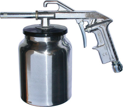 Adatte per l'eliminazione di ruggine su tutte le superfici metalliche. Corpo in pressofusione di alluminio, serbatoio in alluminio. Foro ugello mm 6. Pressione d'uso 6-8 bar (Atm). Attacco rapido unificato.Capacità serbatoio kg 1.