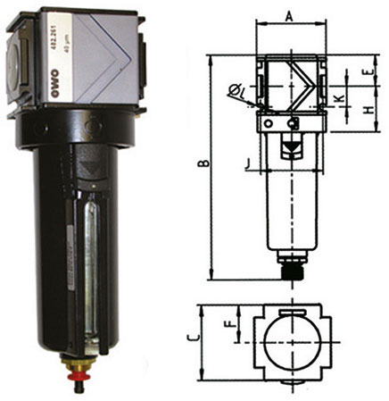 Il filtro di nuovissima concezione modulare, può essere usato singolarmente o come parte di ricambio dei gruppi Art. 3464 GC - 3464 GCA. Può essere fornito nella versione con scarico manuale o automatico. Porosità del filtro in polietilene µm 40. Bicchiere in metallo, a sgancio rapido, per resistere a elevate temperature fino a 80 °C e a più forti pressioni fino a 20 bar.