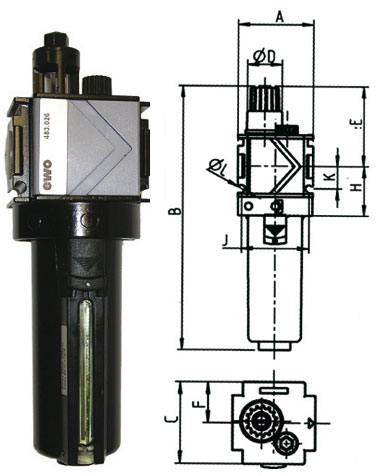 Lubrificatore di nuova concezione modulare per essere utilizzato singolarmente o come parte di ricambio dei gruppi Art. 3464 GC - 3464 GCA - 3464 GF - 3464 GFA. Bicchiere in metallo, a sgancio rapido, per resistere agli olii sintetici più aggressivi, a elevate temperature fino a 80 °C e a più forti pressioni fino a 20 bar. Con dosatore dell'olio in metallo.