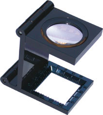 In materiale plastico.Lente chiara e nitida.