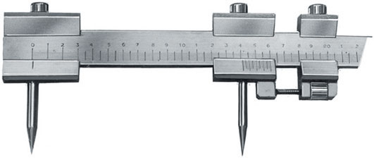 Con vite micrometrica. Nonio 1/20. In acciaio inossidabile, punte in metallo duro.