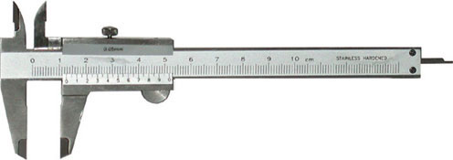 Precisione DIN 862. In acciaio inossidabile, MONOBLOCCO, esecuzione accurata. Tipo con vite di fermo. Interamente temprati, becchi e punte induriti. Graduazione e nonio con lettura 1/20 di mm. Esecuzione cromata opaca.