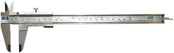 Graduazione e nonio con lettura 1/20 di mm. Esecuzione cromata opaca. CON LETTURA MOLTO NITIDA.