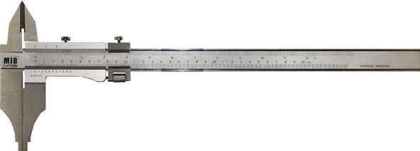 Tipo industriale extra-robusto a becchi lunghi. Precisione DIN 862. In acciaio inossidabile, con asta graduata e nonio cromati opachi. Con vite micrometrica, interamente temprati. Superfici finemente rettificate. Graduazione e nonio con lettura 1/20 di mm, 1/128 di poll.