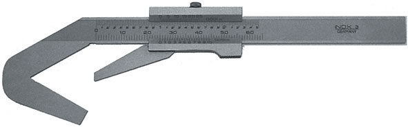 In acciaio inossidabile. Con vite di fermo. Interamente temprati. Con asta graduata e nonio cromati opachi.Graduazione e nonio con lettura 1/20 di mm, 1/128 di poll.