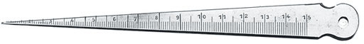 Tipo a sezione piatto-conica.In acciaio temprato e rettificato. Graduazione 1/10 mm.