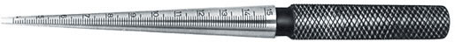 Tipo a sezione tonda-conica.In acciaio temprato e rettificato. Graduazione 1/10 mm.