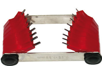 Corpo con viti di bloccaggio.Con 16 puntine in acciaio temprato e rettificato da mm 1,5 a 3, su supporto in plastica.Speciali per i fori dei carburatori.