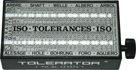 Pratica scatola in plastica antipolvere, antiurto e stagna con apposita rotella per l'indicazione dei parametri di tolleranza di accoppiamenti secondo le raccomandazioni ISO R286 - 1962 per valori nominali fino a mm 500. Dimensioni mm 110x60x30.