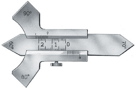Per misurare i cordoni di saldature piane e ad angolo.Esecuzione di precisione, con punte a 60°, 70°, 80°, 90°. In acciaio inossidabile, cromato. Capacità di misura fino a 20 mm.