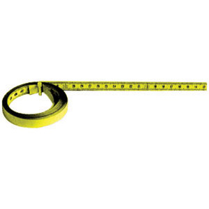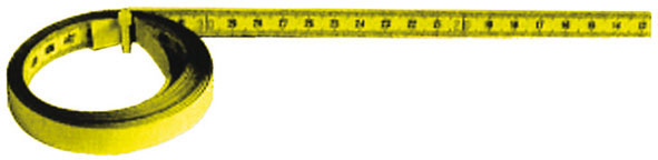 In acciaio smaltato giallo, graduazione a millimetri.Lettura da destra a sinistra, larghezza e spessore mm 13x0,2.