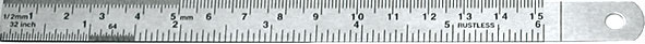 In acciaio INOX. Con graduazione su entrambi i bordi. Lettura da sinistra a destra.