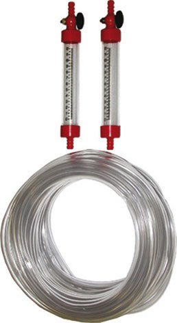 Corpo in ABS, trasparente e infrangibile, graduato in millimetri da 0 a 120. Rubinetti, in speciale materiale sintetico, autolubrificati. Forniti a coppia da utilizzarsi con il tubo di collegamento Art. O4164 (non in dotazione).