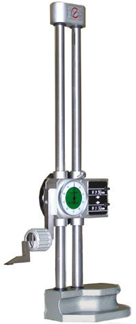 Tipo con lettura a quadrante. Doppia colonna in acciaio inossidabile e contatore a doppia lettura per la rilevazione rapida dei valori positivi e negativi rispetto al riferimento zero. Base rettangolare in ghisa pesante, con superficie d’appoggio rettificata. Punta per tracciare con riporto in metallo duro. Lettura sull’orologio 0,01 mm. Lettura sul contatore 1 mm.