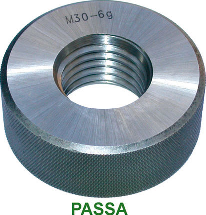 Calibro ad anello DIN 13, PASSA per filettatura metrica destra, in acciaio speciale, temprato, tolleranza 6g.