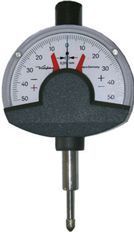 Con quadrante a settore. Divisione 1/1000. Con una lancetta per l’indicazione delle differenze e due limiti spostabili per l’indicazione minima e massima delle tolleranze. Azzeramento micrometrico mediante vite godronata. Quadrante mm. 62. Diametro attacco mm 8. Capacità di misura 0,10 mm di cui: - 0,05 a sinistra - meno - 0,05 a destra + più.