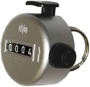 Per contare rapidamente oggetti in movimento. Si impugna infilando l’anello in un dito della mano. Gli impulsi vengono dati con un dito alla levetta superiore.Azzeramento istantaneo mediante bottone godronato. Altezza cifre mm 4,5.Numero cifre 4.