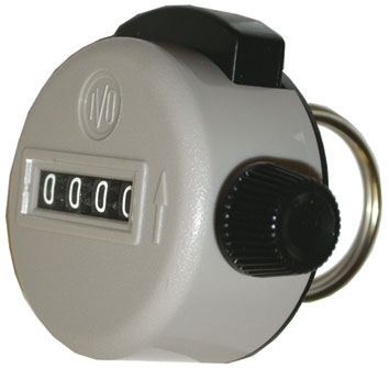 Per contare rapidamente oggetti in movimento. Si impugna infilando l’anello in un dito della mano. Gli impulsi vengono dati con un dito alla levetta superiore.Azzeramento istantaneo mediante bottone godronato. Altezza cifre mm 4,5.Numero cifre 4.