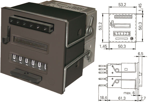 1 impulso = 1 cifra. Numero cifre 6, altezza cifre mm 4,5.