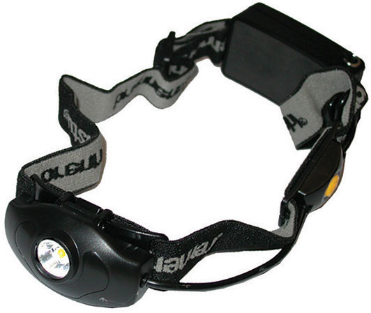 In robusto materiale plastico con guarnizioni in gomma con larghi elastici regolabili in tessuto per un saldo e comodo fissaggio. Regolabile in senso verticale. Resistente agli spruzzi d'acqua e alla polvere (IP 44). Funzionamento a 2 batterie alcaline 1,5 V (tipo AA - Art. 3600 E), in dotazione. Con interruttore a 2 regolazioni della luminosità e funzione luce SOS intermittente. A luce frontale con 1 LED TOSHIBA con luminosità pari a 100 LUMEN. Peso g 125.