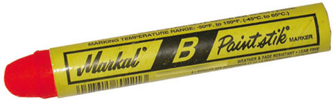 Tipo a stick con punta tonda grossa. Vernice solida senza piombo, resistente all'acqua e ai raggi UV. Per marcare su tutte le superfici fredde, comprese quelle grasse o arrugginite.