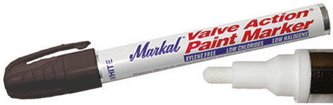 Tipo a pennarello a pompa con punta acrilica mm 2x4, con clip. Vernice opaca indelebile, resistente all'acqua e ai raggi UV, esente da xilolo e a basso contenuto di alogeni e zolfo. Per marcare su superfici liscie e pulite di metallo, plastica, gomma, vetro, cartone, legno ecc.