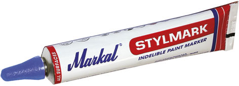 Tipo a tubo con punta sferica da mm 3, in acciaio temprato. Vernice opaca indelebile, senza piombo e senza solventi nocivi. Resistente a temperature fino a + 200 °C. Per marcare su qualunque tipo di superficie di metallo, anche oleose, bagnate, arrugginite.