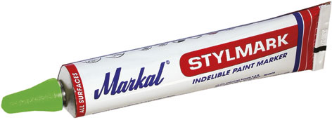 Tipo a tubo con punta sferica da mm 3, in acciaio temprato. Vernice opaca indelebile, senza piombo e senza solventi nocivi. Resistente a temperature fino a + 200 °C. Per marcare su qualunque tipo di superficie di metallo, anche oleose, bagnate, arrugginite.