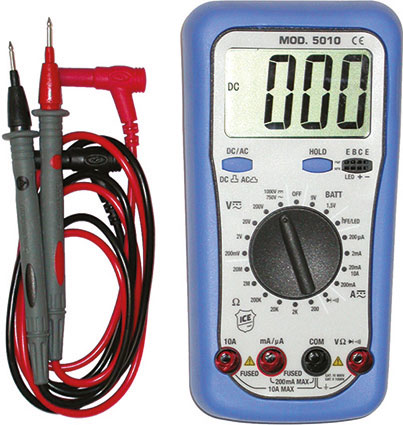 Tipo elettronico digitale. Per elettrotecnici. Selezione delle funzioni e delle misure mediante commutatore. MISURAZIONE DELLA TEMPERATURA mediante sonda in dotazione. Polarità automatica. Lettura su display. Indicatore di batteria scarica. Con test: diodi, transistor e di continuità con buzzer. Tensione/Corrente continua: portata 400 mV a 1000 V/400 µA a 10 A. Tensione/Corrente alternata: portata 400 mV a 750 V/400 µA a 10 A. Resistenza: portata 400 ohm a 40 Mohm. Rilevamento della temperatura da -20°C a +750°C. Alimentazione: 2 batterie alcaline a 1,5 V (Art. 3600 C), in dotazione.