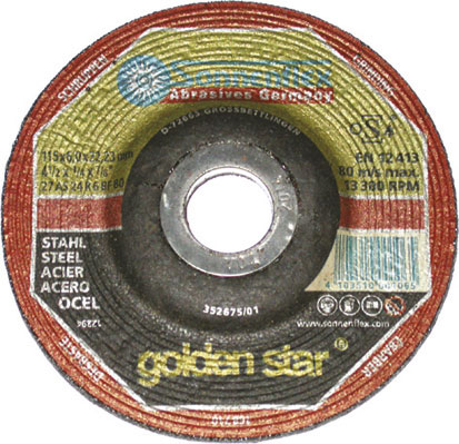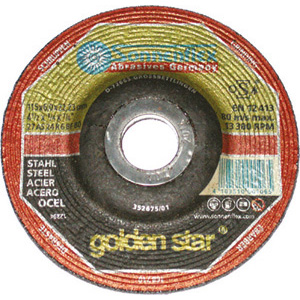Per sgrossare acciai, acciai inossidabili e ghisa. Particolarmente indicate in carpenteria e lavorazioni industriali. Altissimo rendimento e durata. In elettrocorindone bonificato. Armatura in fibra. Foro Ø mm 22. Tipo a centro depresso. Grana 24.