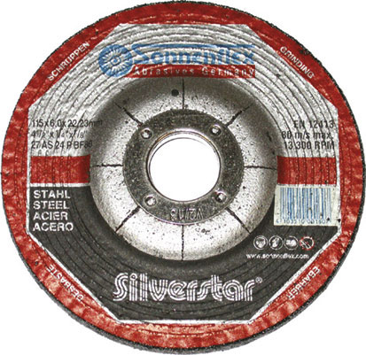 Uso universale per sgrossare ferro, metalli e acciai legati. In elettrocorindone, retinato, flessibile e infrangibile. Foro Ø mm 22. (Solo misura mm 100x6: Ø mm 16). Tipo a centro depresso. Grana 24.